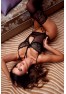 A sexy corset made of lace and semi-transparent mesh. The corset features garter straps, hook closure, and adjustable straps.