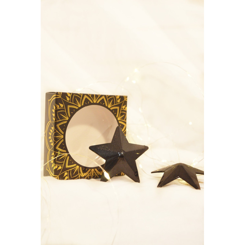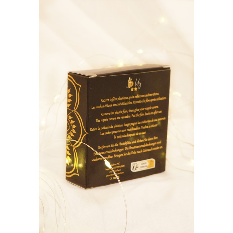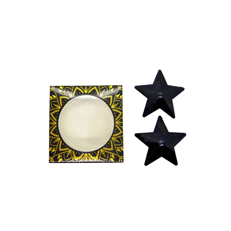 Nipple Métal noir en forme d'étoile réutilisable. Retirer le film protecteur et appliquer sur le mamelon peau propre et sèche et sans crème