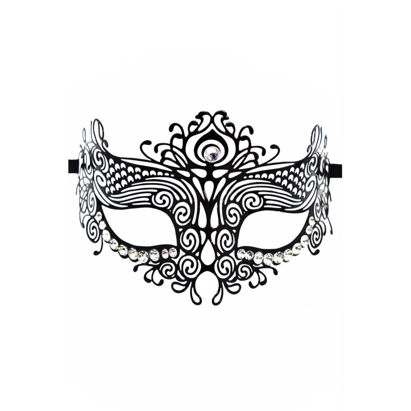 Masque vénitien Ornella rigide noir avec strass. Attache par liens. Un masque vénitien haut de gamme pour vos soirées déguisées ou sensuelles