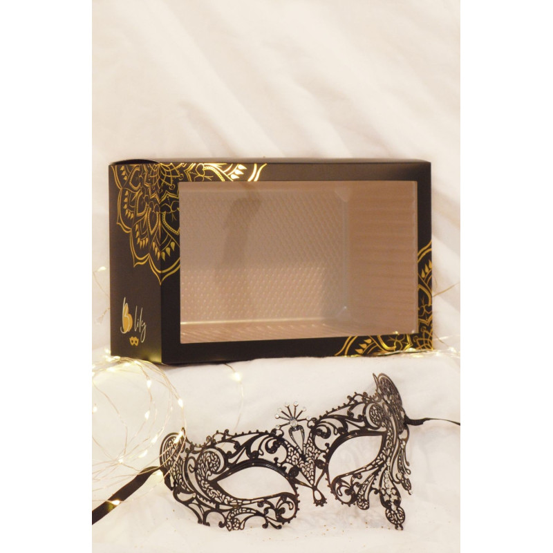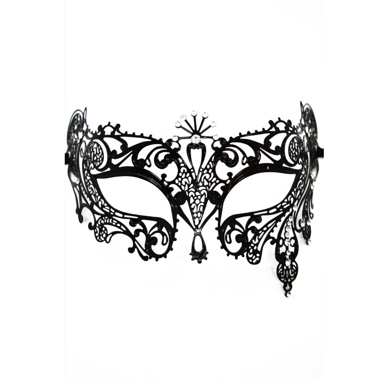 Masque vénitien Bianca rigide noir avec strass. Attache par liens. Un masque vénitien haut de gamme pour vos soirées déguisées ou sensuelles