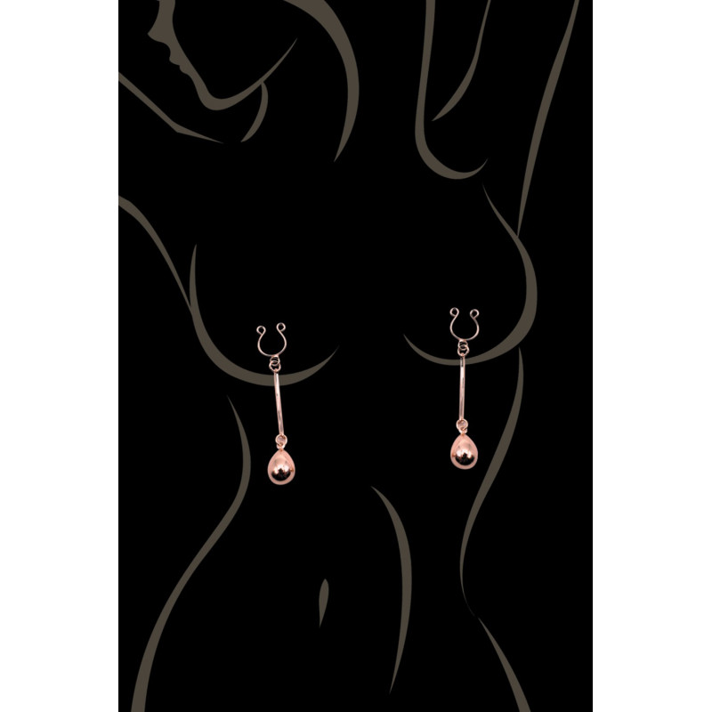 Sublimez votre poitrine avec ces Bijoux de seins, composé d'une paire de Pinces tétons avec sa perle dorée rosée. Style, Charme et beauté ! Très facile à ajuster sur vos tétons.