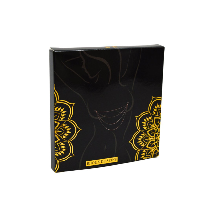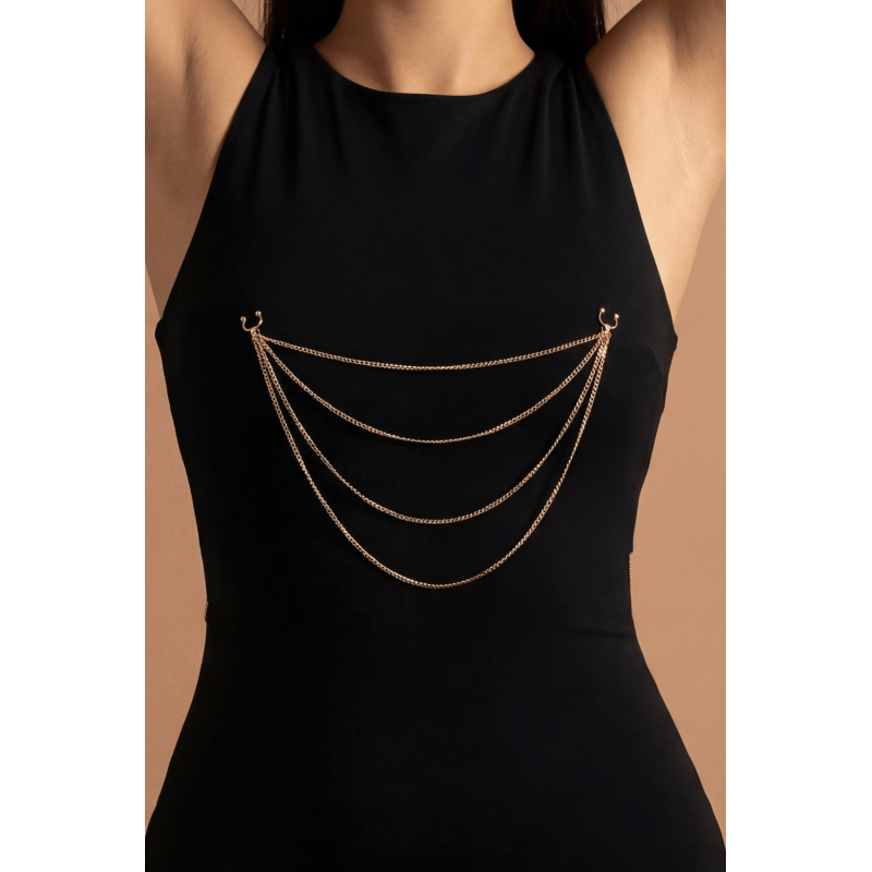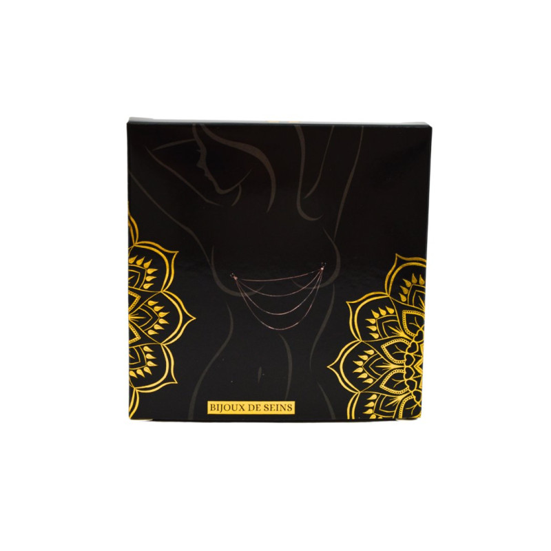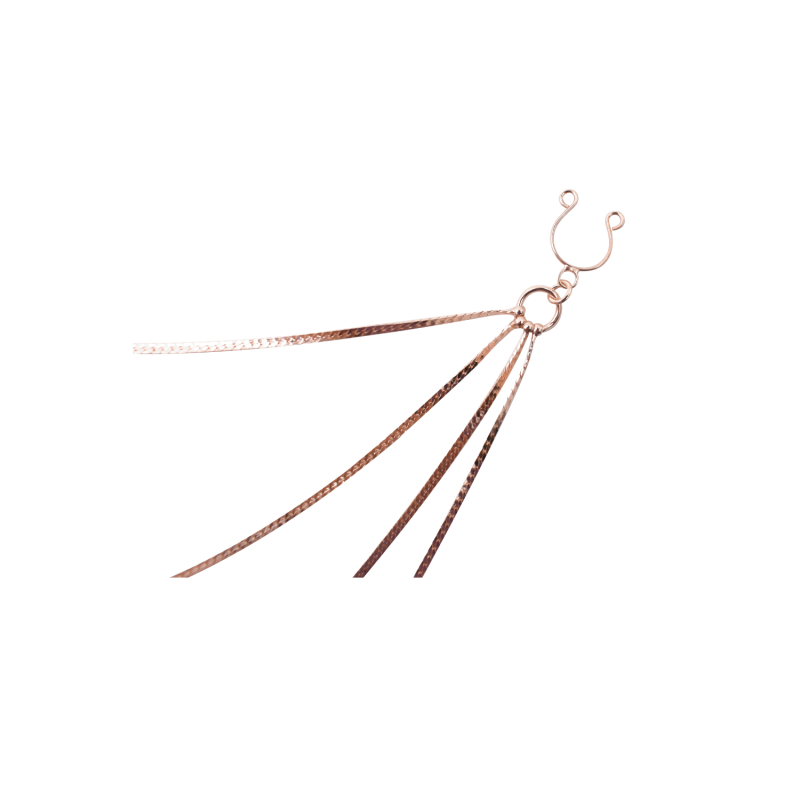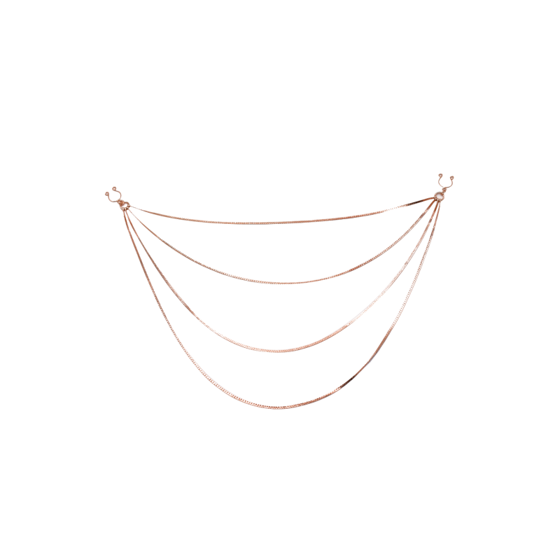 Cette parure de bijoux de corps, composé d'une paires de pinces tétons avec fines chainettes roses dorées, sublimera votre silhouette. Très facile à ajuster sur vos tétons.