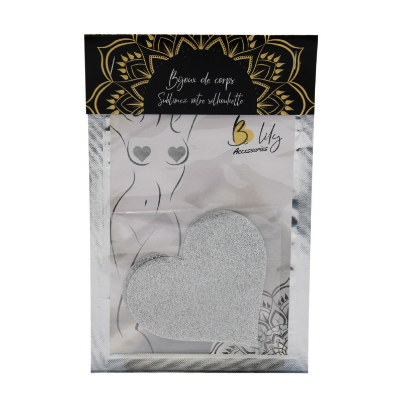 Cache mamelons forme de cœur pour tétons. Cœur blanc pailleté à coller pour sublimer votre poitrine.