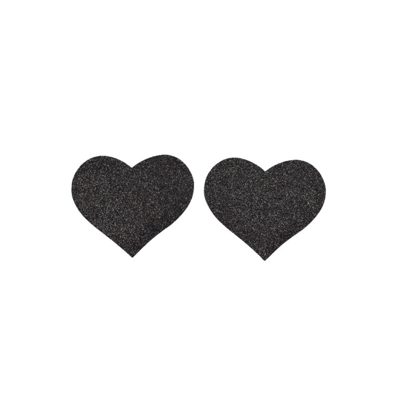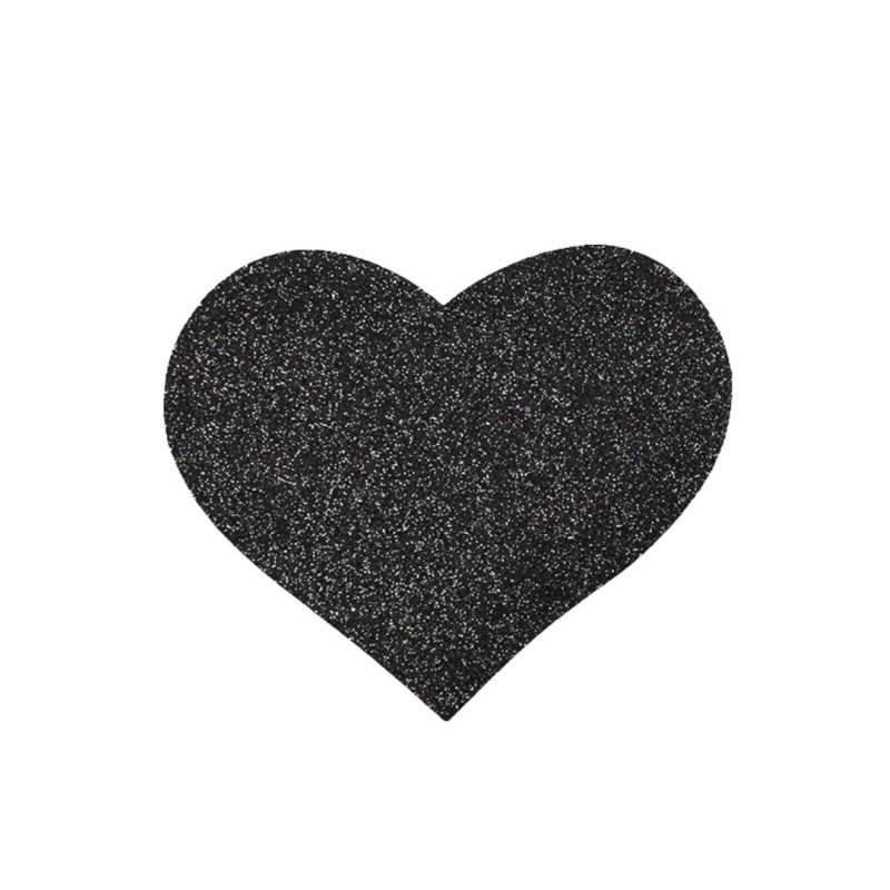 Cache mamelons forme de cœur pour tétons. Cœur noir pailleté à coller pour sublimer votre poitrine.