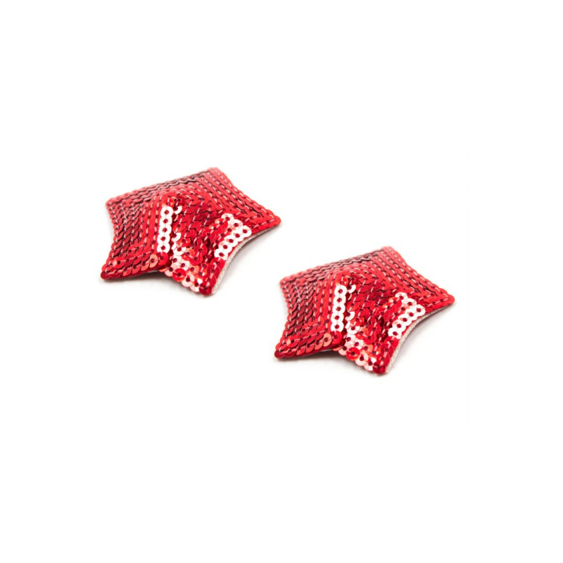 Sublimez votre poitrine avec ces caches mamelons adhésifs et réutilisables, en forme d'étoile, recouverte de sequins brillants rouges. Ces nipples rouges brillants, vous donneront une grande dose de charme !