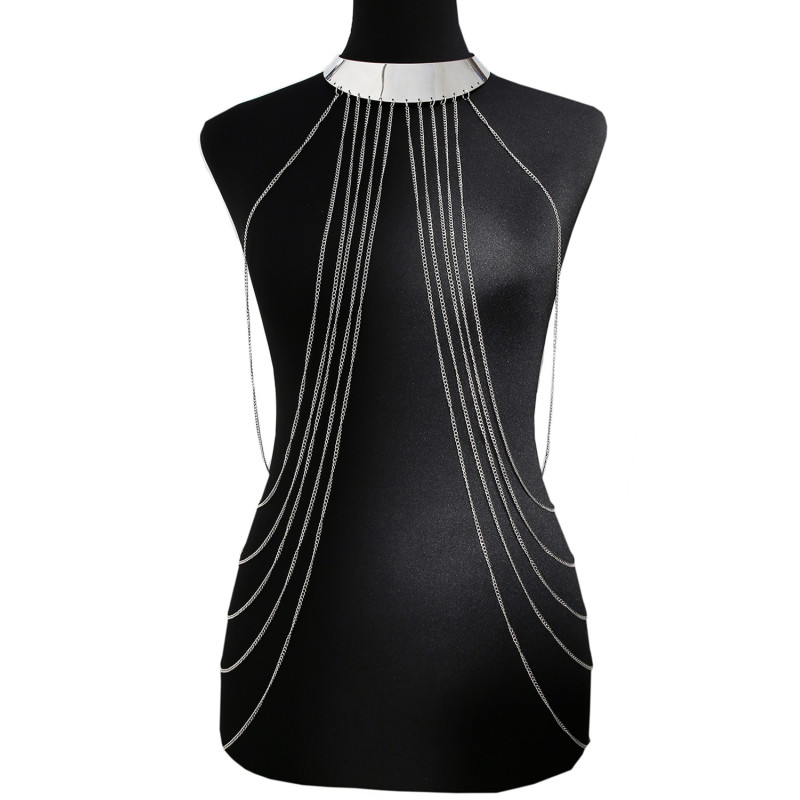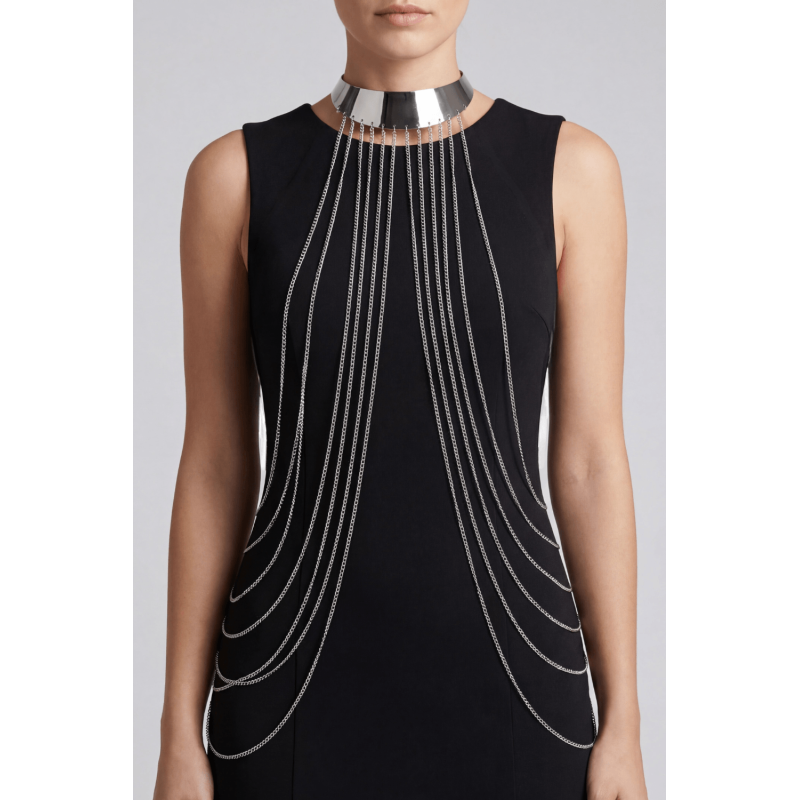 Sublimez votre corps avec cette magnifique Chaine de Corps effet argenté avec large cou argenté. Ce bijou de corps est à porter sur une robe ou un top noir pour la faire sublimer l'ensemble ou simplement sur votre corps nu. La marque BE LILY Accessoires va sublimer votre silhouette.