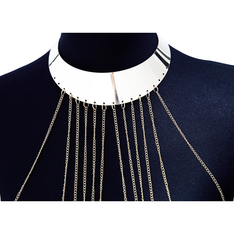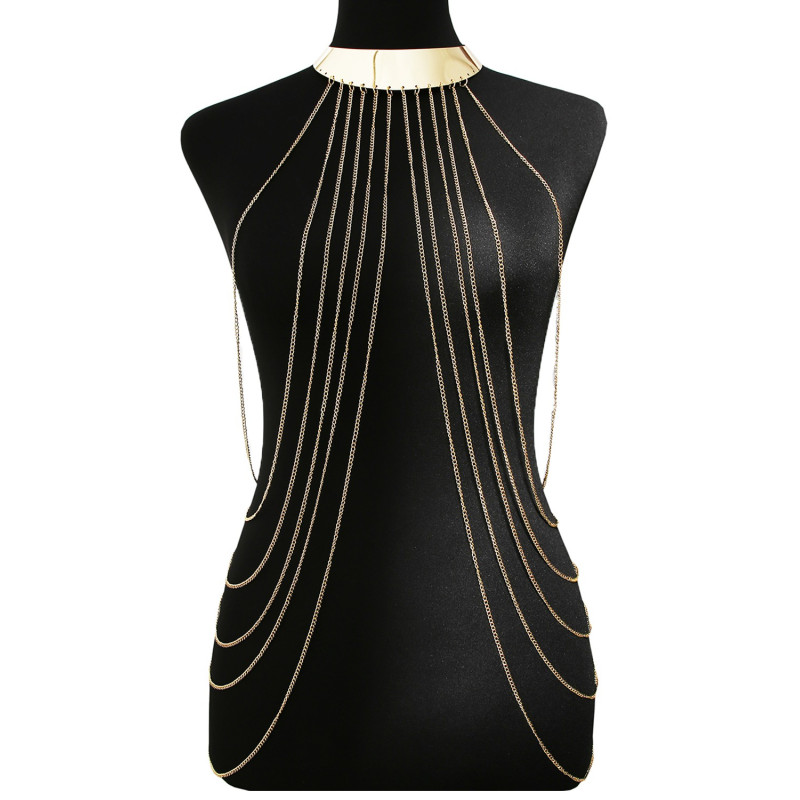 Sublimez votre corps avec cette magnifique Chaine de Corps effet doré avec large cou doré. Ce bijou de corps est à porter sur une robe ou un top noir pour la faire sublimer l'ensemble ou simplement sur votre corps nu. La marque BE LILY Accessoires va sublimer votre silhouette.