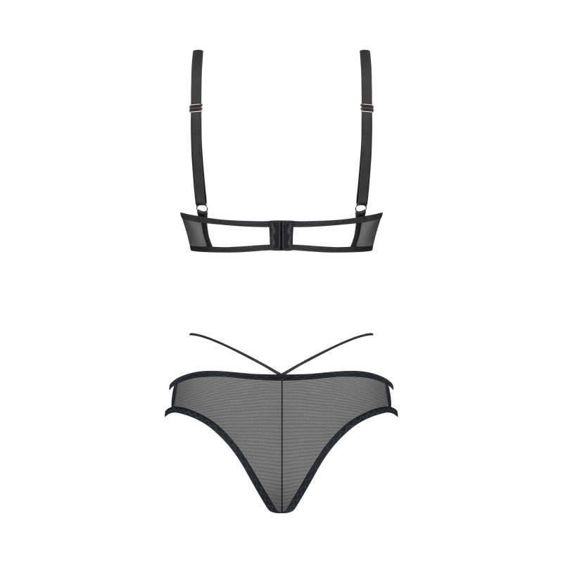 The set consists of a uniquely designed bra and panties. Its original cut adorned with a botanical pattern attracts attention. An intriguing combination of high-quality materials that will accentuate the beauty of the female figure.