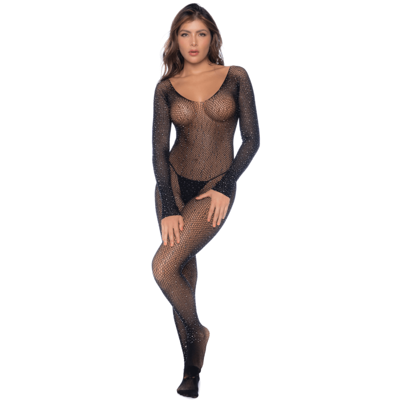 Plongez dans l'élégance et le glamour avec cette combinaison noire résille à manches longues, sublimée par des strass scintillants. Conçue pour épouser la silhouette tout en offrant un effet spectaculaire, elle est idéale pour les soirées spéciales ou pour apporter une touche audacieuse à votre tenue.