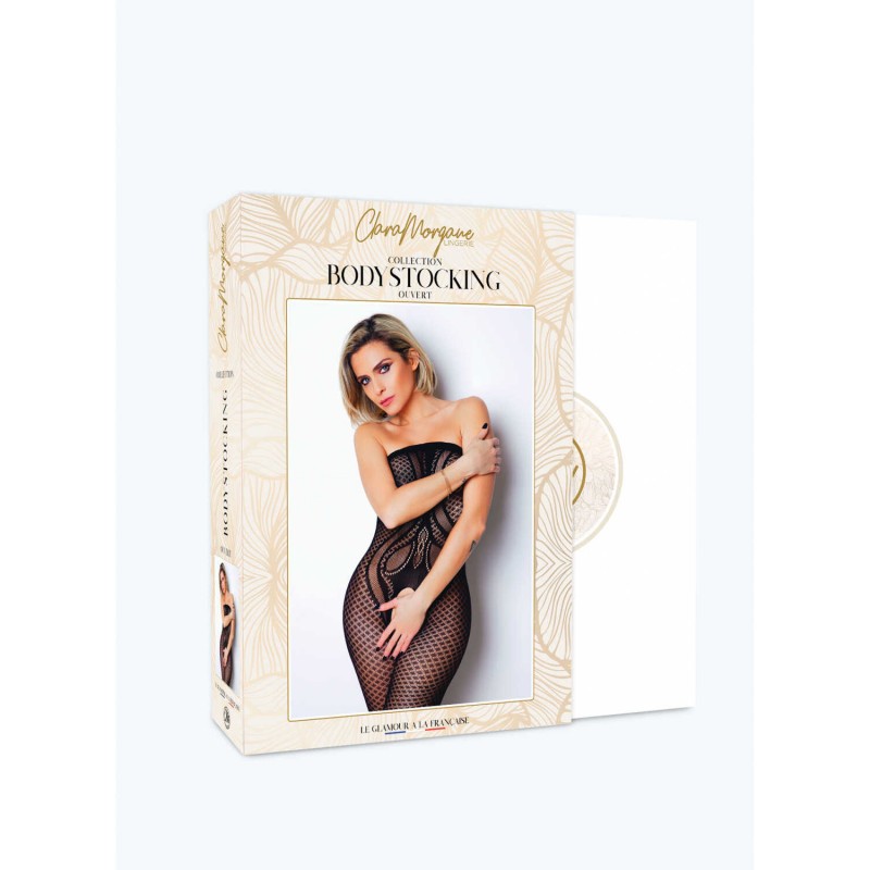 Ce bodystocking façon bustier propose un magnifique motif. Le tissu à la fois opaque, transparent et ajouré révèle votre corps de manière délicate et sensuelle. A l’arrière, votre dos nu appelle les baisers et vos fesses dévoilées appellent quelques caresses…
