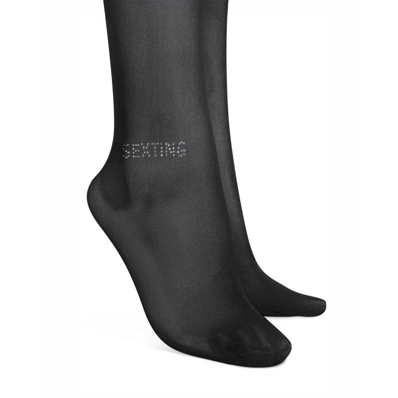 Collants à entrejambe ouvert en matériau élastique semi-transparent qui épousera doucement les jambes. Le lettrage SEXTING au-dessus de la cheville ajoute une touche épicée, tandis que la large ceinture assure un confort et un ajustement sécurisé.