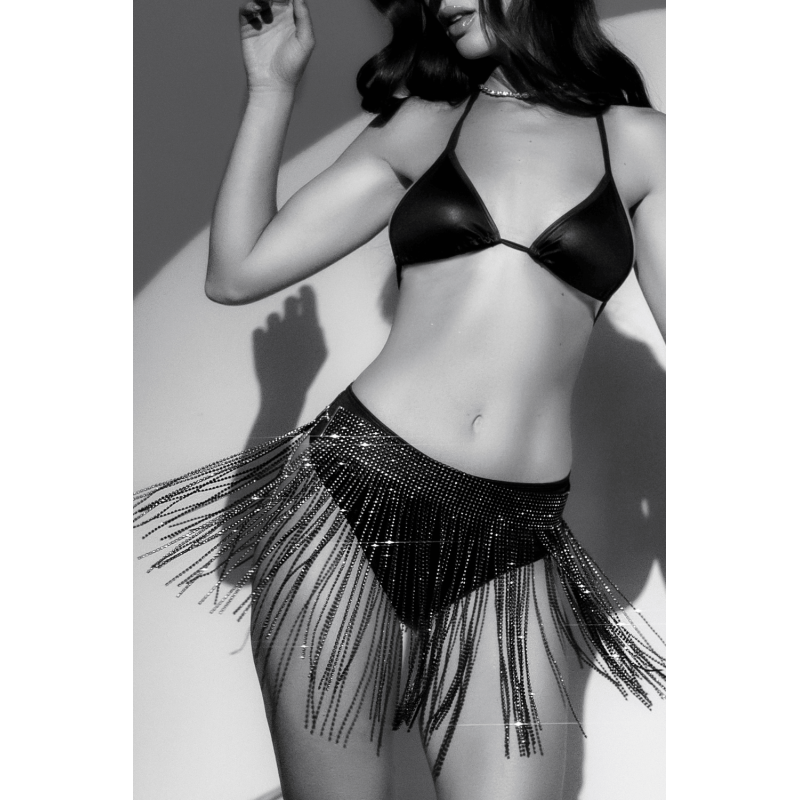Ornée de franges en strass scintillants, elle capte la lumière à chacun de vos mouvements et crée un effet visuel saisissant.