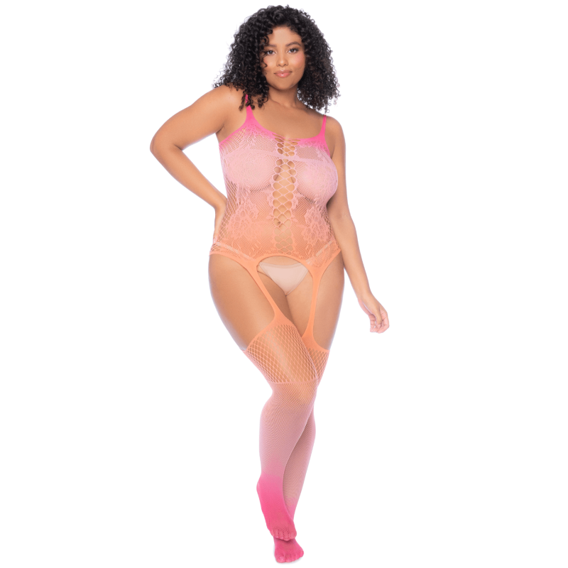 Osez l'originalité avec cette combinaison grande taille en résille dégradée aux couleurs vibrantes. Son design en filet audacieux et ses motifs floraux apportent une touche de sensualité et de modernité.