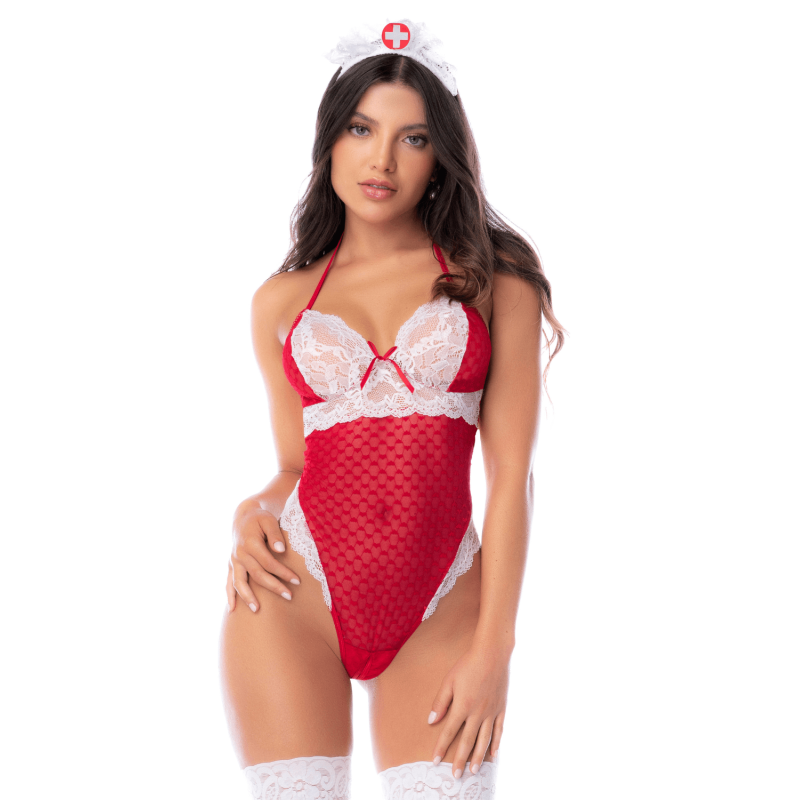 Body infirmière noir en maille et dentelle avec accessoire tête – Mapalé