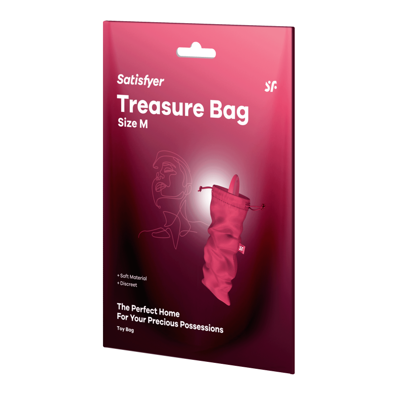Que vous cherchiez un moyen élégant de stocker votre produit de plaisir dans votre tiroir ou que vous souhaitiez emporter votre Satisfyer préféré avec vous lors de vos voyages et le protéger des regards indiscrets, les sacs au trésor Satisfyer sont exactement ce dont vous avez besoin! Fabriqués à partir de matériaux doux et durables, ils gardent vos trésors en sécurité jusqu’à ce qu’il soit temps pour la prochaine aventure sexy. Le Satisfyer Toy Bag M a la taille parfaite pour stocker vos petits trésors Satisfyer comme lay-ons, bouchons anaux ou boules de Kegel d’une manière élégante et sûre.