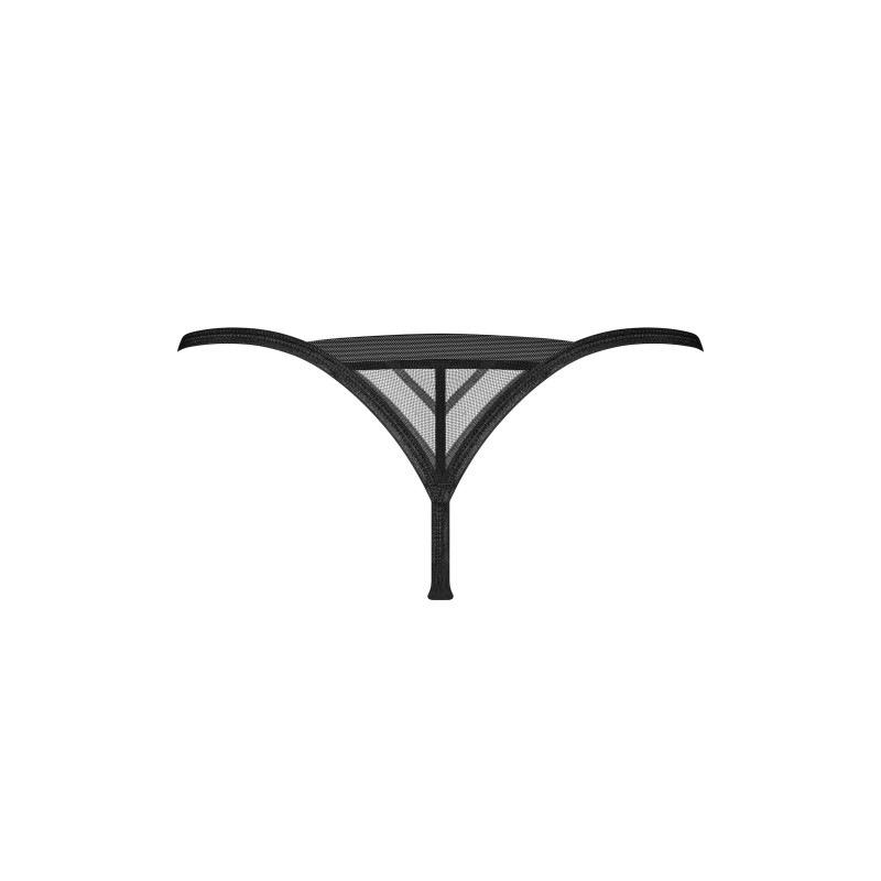 Embrassez votre côté audacieux avec le Tanga Lune Bellis, un chef-d’œuvre de lingerie design contemporain. Ce superbe string noir allie harmonieusement une bordure élastique et douce à un filet transparent, accentué par des rayures diagonales minimalistes. Le design en forme de V épouse parfaitement votre corps, offrant à la fois confort et charme.
